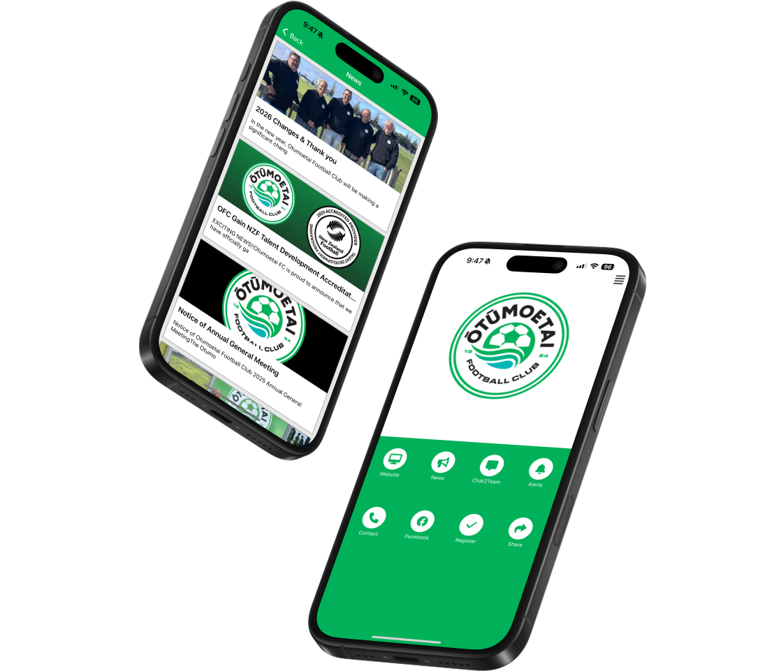 Go to the App Store or Google Play, search for Sporty NZ, download then search for Otūmoetai Football Club.