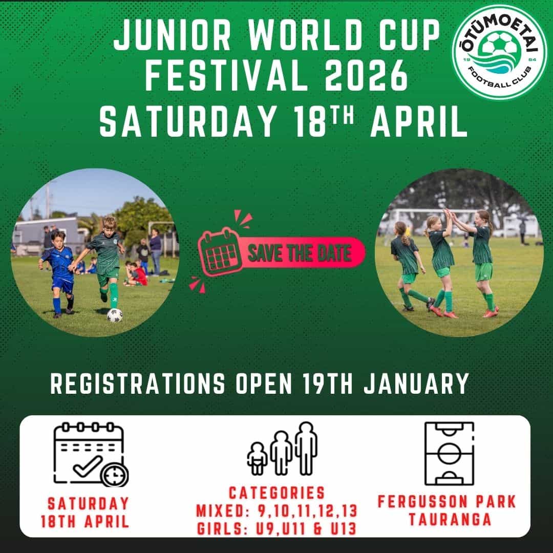 Our Junior World Cup Festival has now been on the Junior Football calendar for a number of years for teams and clubs across around the WaiBOP region and beyond. A sell out event to kick off the Junior season the last weekend of the School Holidays, as well as ideal preparation for the season ahead. The day also provides players, parents and coaches a great experience with food, prizes, other football activities and an opportunity to win other spot prizes for the best dressed country.